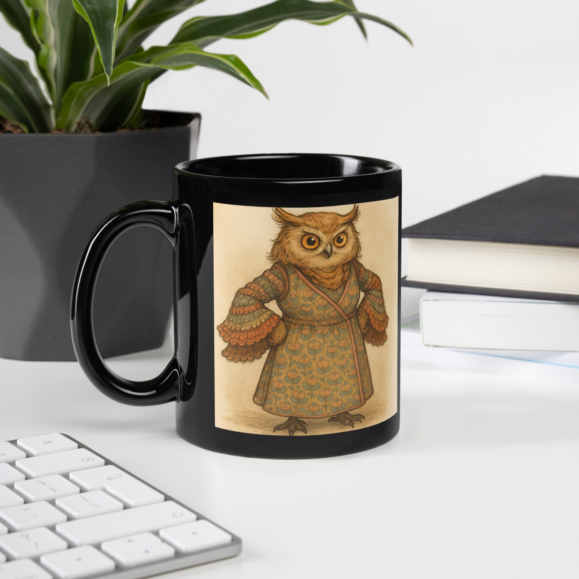 Sturdy and sleek in glossy black—this mug is a cupboard essential for a morning java or afternoon tea. The print area on the mug is fun and the purpose of it to fill in your day with joy. Ceramic. 11 oz mug dimensions: 3. 85″ × 3. 35″ (9. 8 cm × 8. 5 cm). Lead and BPA-free material. Dishwasher and microwave safe. Note that there will be a slight difference between the shade of the black color of the mug itself and the default black background of the print file.